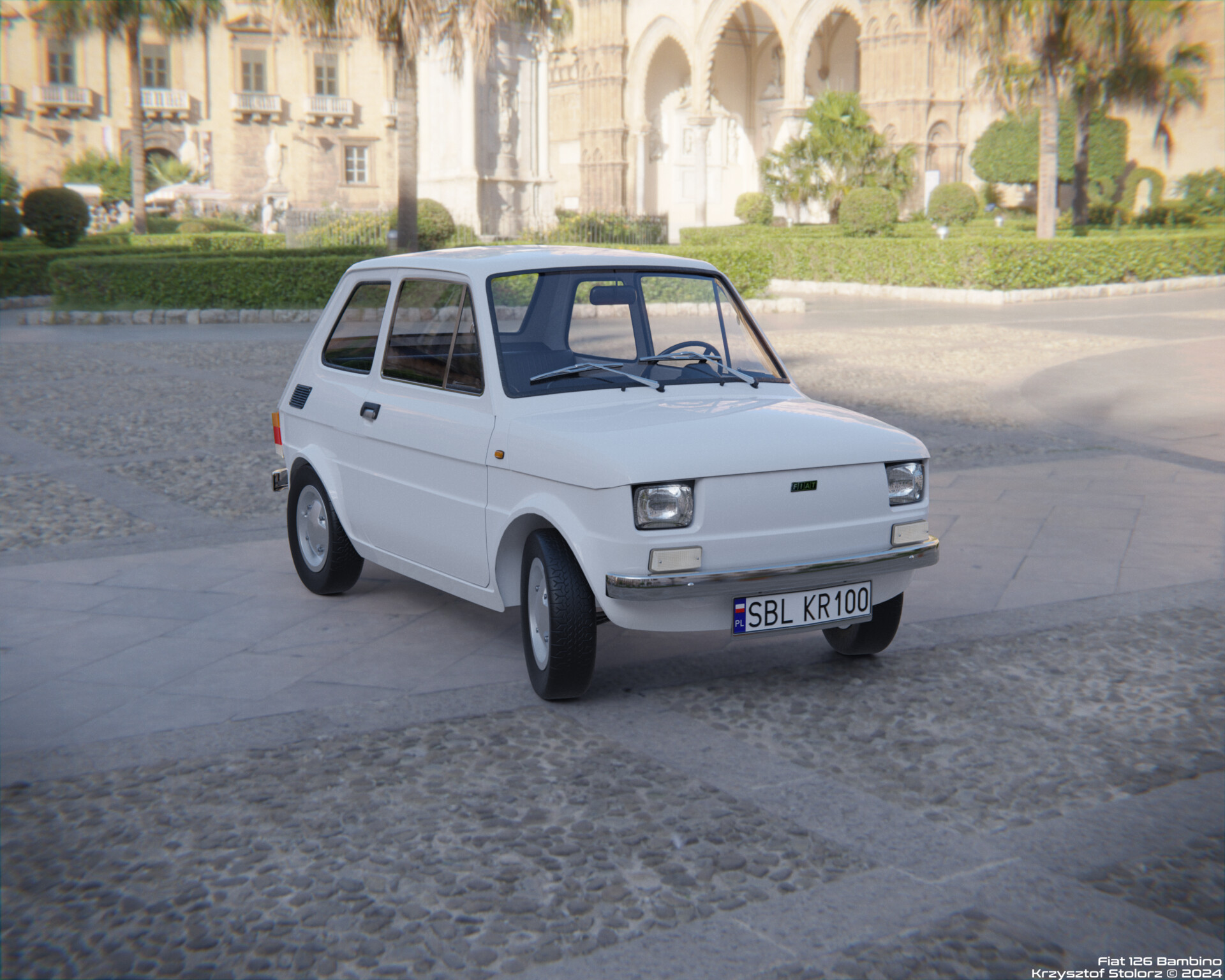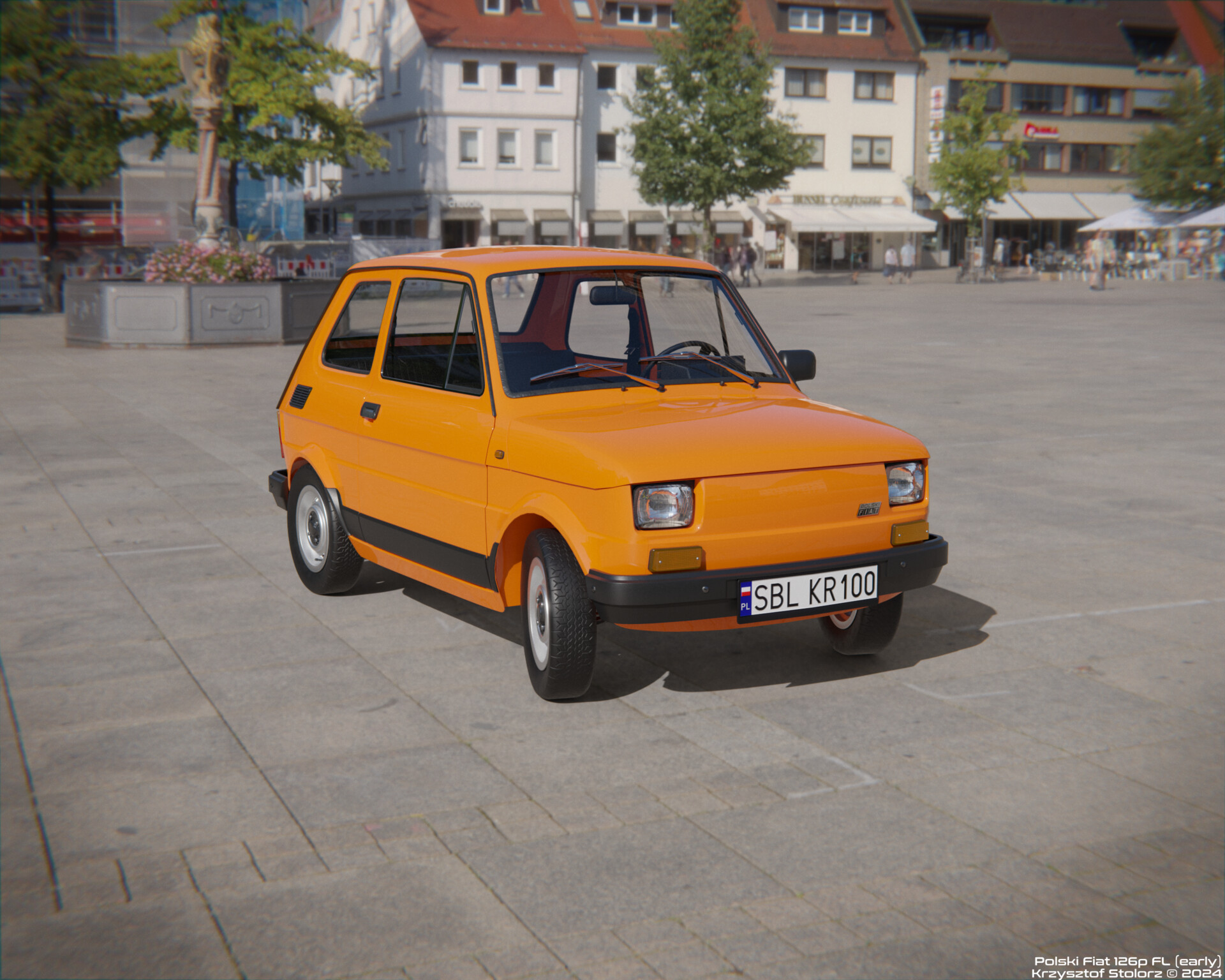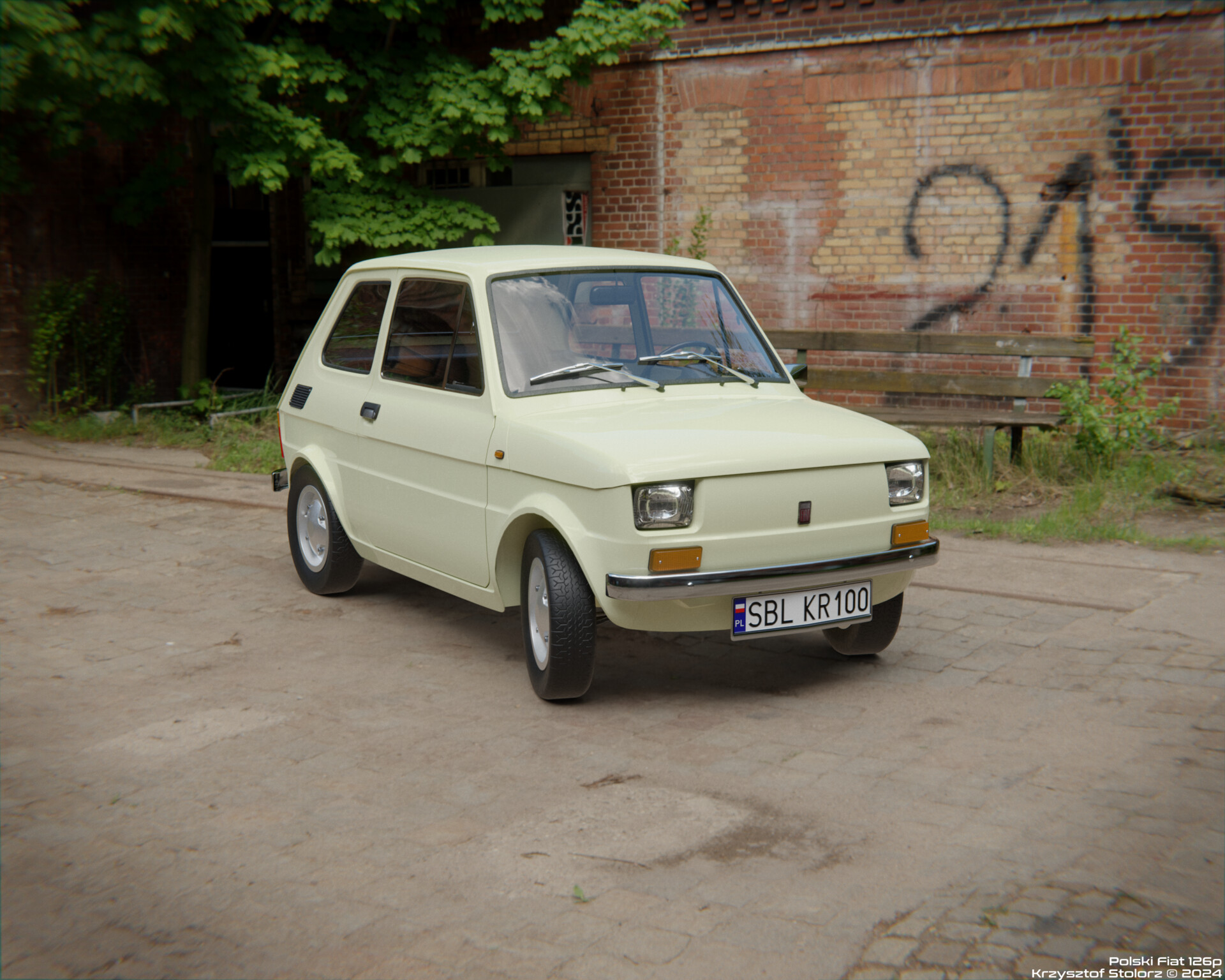 Prace nad projektami zacząłem 11 lipca 2024 roku bazując na wcześniej wykonanym modelu w wersji low-poly. Prace trwały za długo, bo 37 „dni” i toczyły się równolegle dla każdego z projektów. Ukończyłem pięć wersji tego auta (Bambino, 126p 600, 126p 650 i 2 wersje FL) i opublikowałem je 3 września 2024 roku.