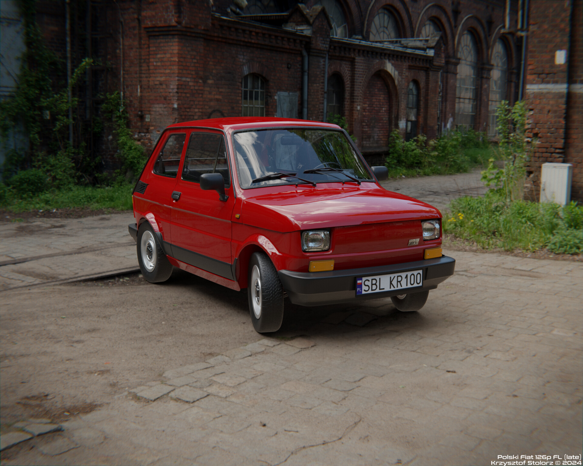 Powyższy model „późnego” Polskiego Fiata 126p FL bazowałem na wyglądzie samochodu, którego posiadała moja rodzina w latach 1991-1995. Był to samochód koloru wiśniowego i posiadał czwarty pakiet wyposażenia – czyli „pełen tłuszcz” – posiadał m.in. prawe lusterko boczne, pasy bezpieczeństwa również z tyłu, uchylane tylne szyby itd.. Za takie udogodnienia trzeba było dosyć dużo dopłacić. Fiat był znany z tego, że miał kilka różnych pakietów dodatków. „Bieda line” kosztował ponad 29 milionów (ówczesnych) złotych, a dodatki kosztowały jeszcze kolejne 3 miliony, czyli ponad 10% wartości „wersji podstawowej”. Ludzie przez sentyment zapominają jak mały i głośny to był samochód. Nie należał też do najoszczędniejszych – tata wspomina, że był w stanie spalić 7 litrów paliwa na 100 km (przypomnę, że silnik miał 650 cm³ pojemności skokowej). Był prosty w naprawie, ale nie był niezawodny. Nasze pierwsze rodzinne wakacje nad morzem zakończyły się u rodziny w Poznaniu. Rodzice sprzedali go w 1995 (przebieg 35 tys. km), a następnie kupili turkusowego Poloneza MR’93, który służył nam przez kolejne lata.