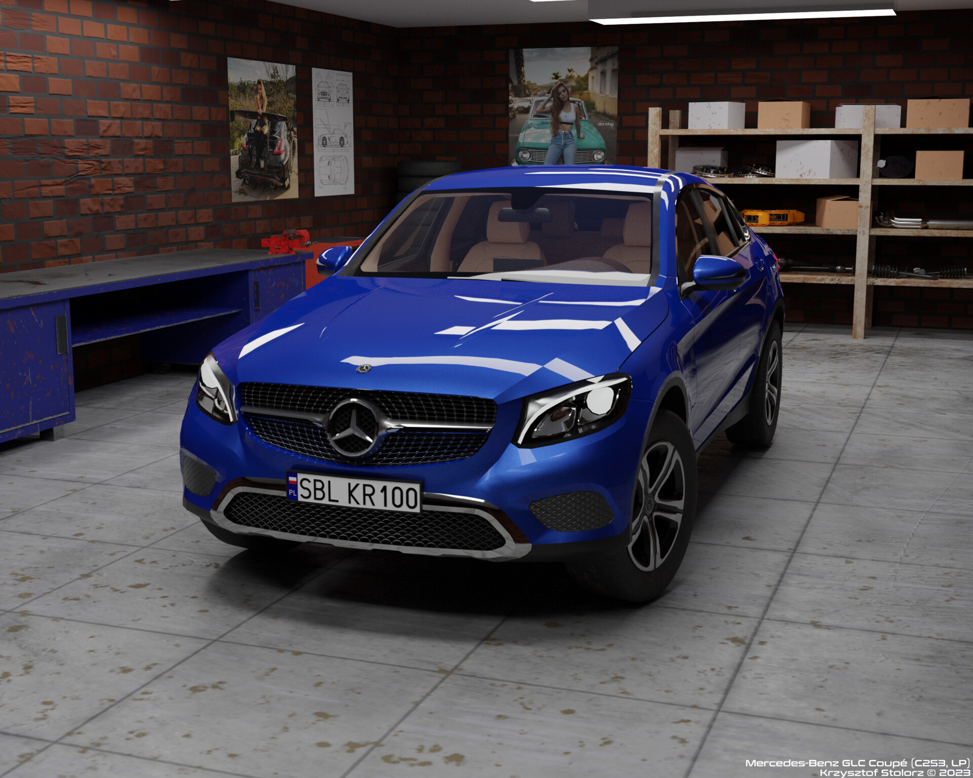 Zbliżał się moment osiągnięcia 500 obserwujących na Sketchfab. Z tej okazji chciałem wykonać swoisty „prezent”, „nagrodę” dla społeczności Sketchfab za wszelkie otrzymane polubienia i obserwowania. Taki gest okazuje wielu twórców na tego typu serwisach. Zastanawiałem się nad wyborem samochodu. Pierwotnie myślałem nad Volkswagenem Atreonem, ale plany się w nim rozmijają i na razie dałem sobie z nim spokój. Myślałem też nad samochodem Renault Arkana. Ostatecznie jednak wybrałem Mercedesa-Benza GLC w wersji nadwozia SUV Coupé. Założyłem, że będzie to model w stylistyce low-poly, ale z teksturami i funkcjonalnym szkieletem.