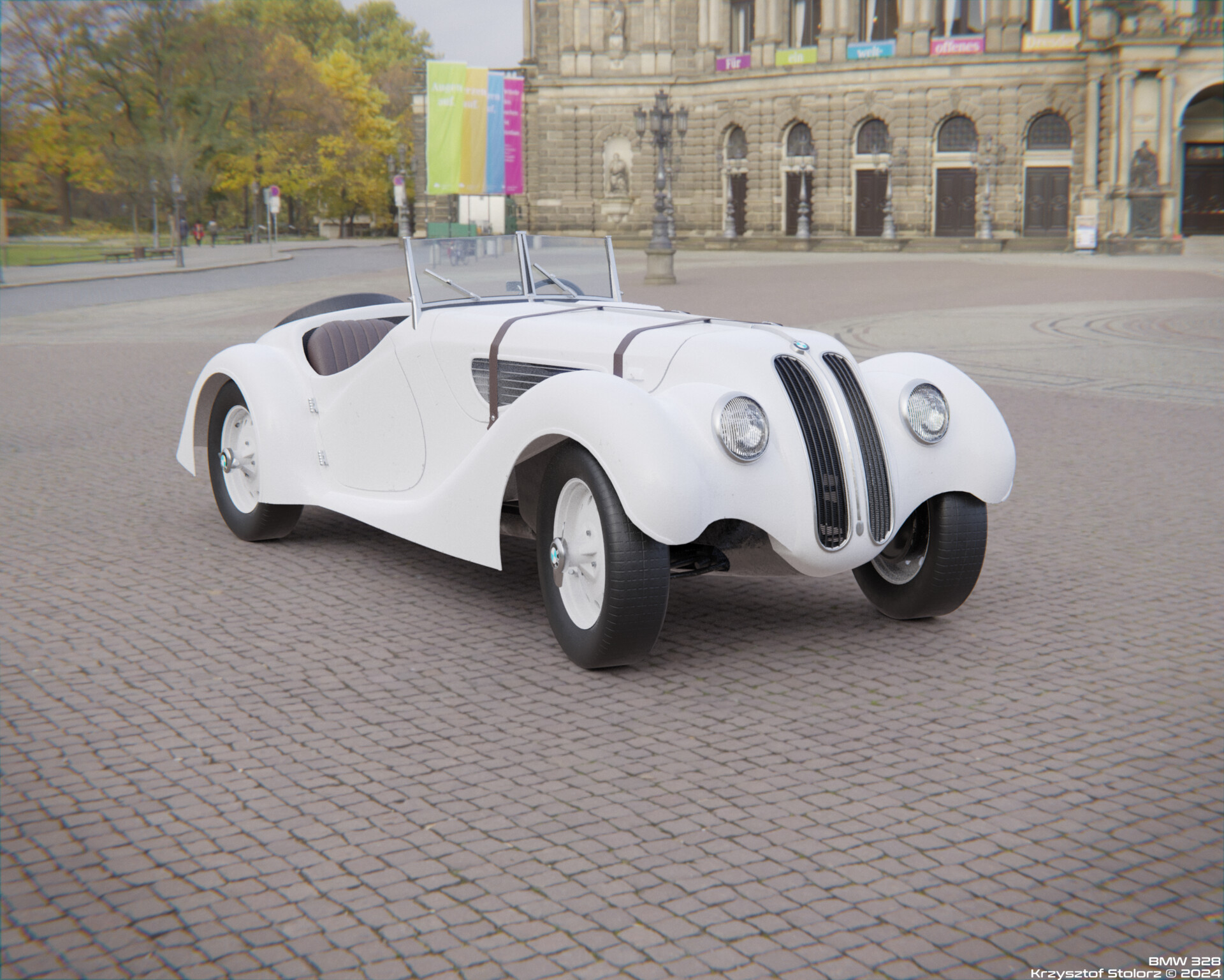 Jak już wspominałem w części poświęconej historii marki – BMW 328 był sportowym roadsterem produkowanym w latach 1936 – 1939. Samochód posiadał opływową karoserię. Grill stanowiły podłużne, charakterystyczne tzw. „nerki” (jak widać już dawno temu modny był duży grill i nie jest to współczesny wymysł). Maska zamykana była przy pomocy dwóch skórzanych pasów i otwierała się do tyłu, a nie na boki, jak to miało powszechnie miejsce w samochodach z tamtych czasów. Napędzał go 2 litrowy, rzędowy 6-cio cylindrowy (R6), górnozaworowy silnik OHV (wałek rozrządu w bloku silnika poprzez system popychaczy i dźwigni steruje zaworami umieszczonymi w głowicy). Zasilany był trzema dolnossącymi (opadowymi) gaźnikami Solex 30 JF. Moc silnika wynosiła 80 KM (przy 5000 obr/min), a moment obrotowy 126 Nm (przy 4000 obr/min). Napęd przenoszony był na tylne koła poprzez 4-biegową manualną skrzynię biegów.