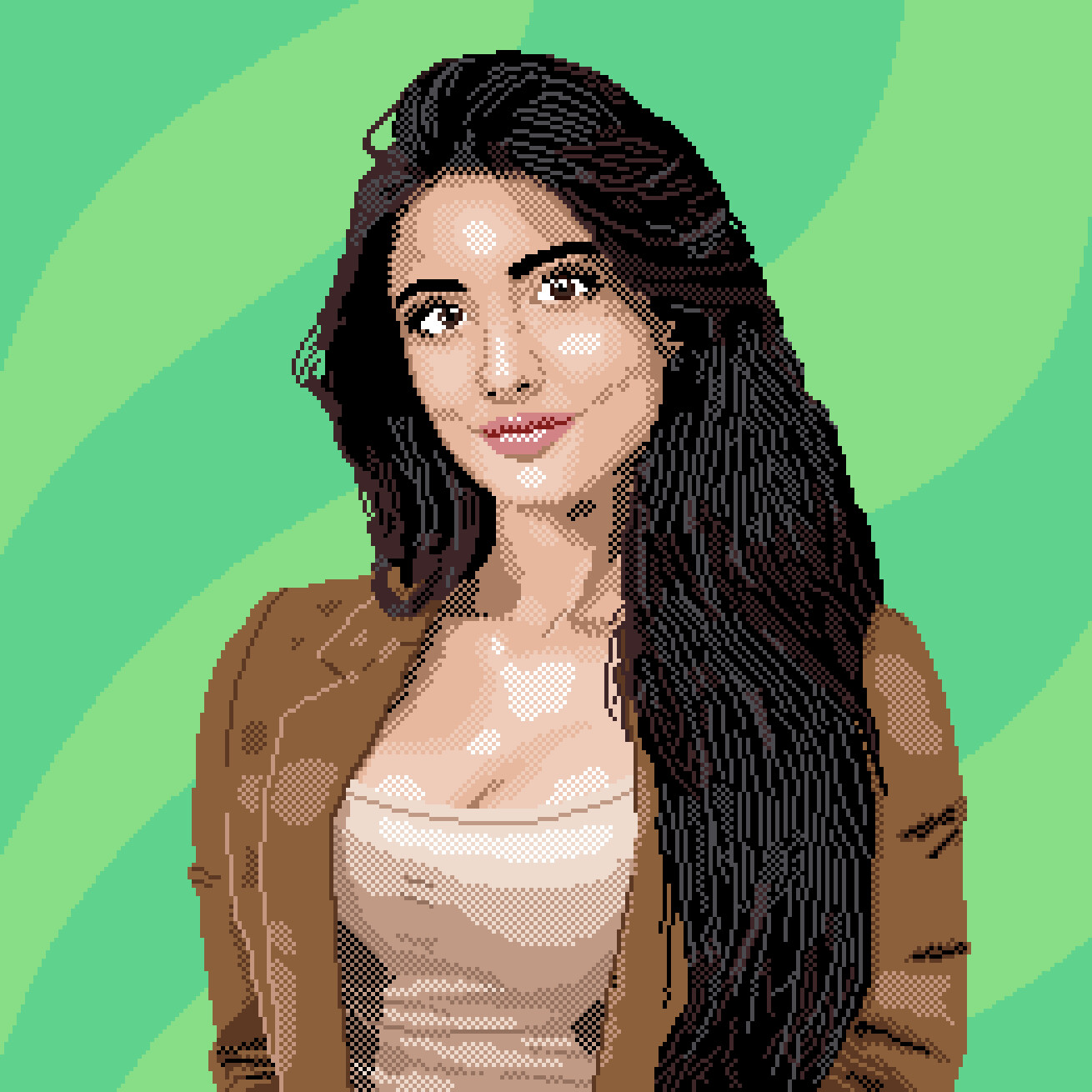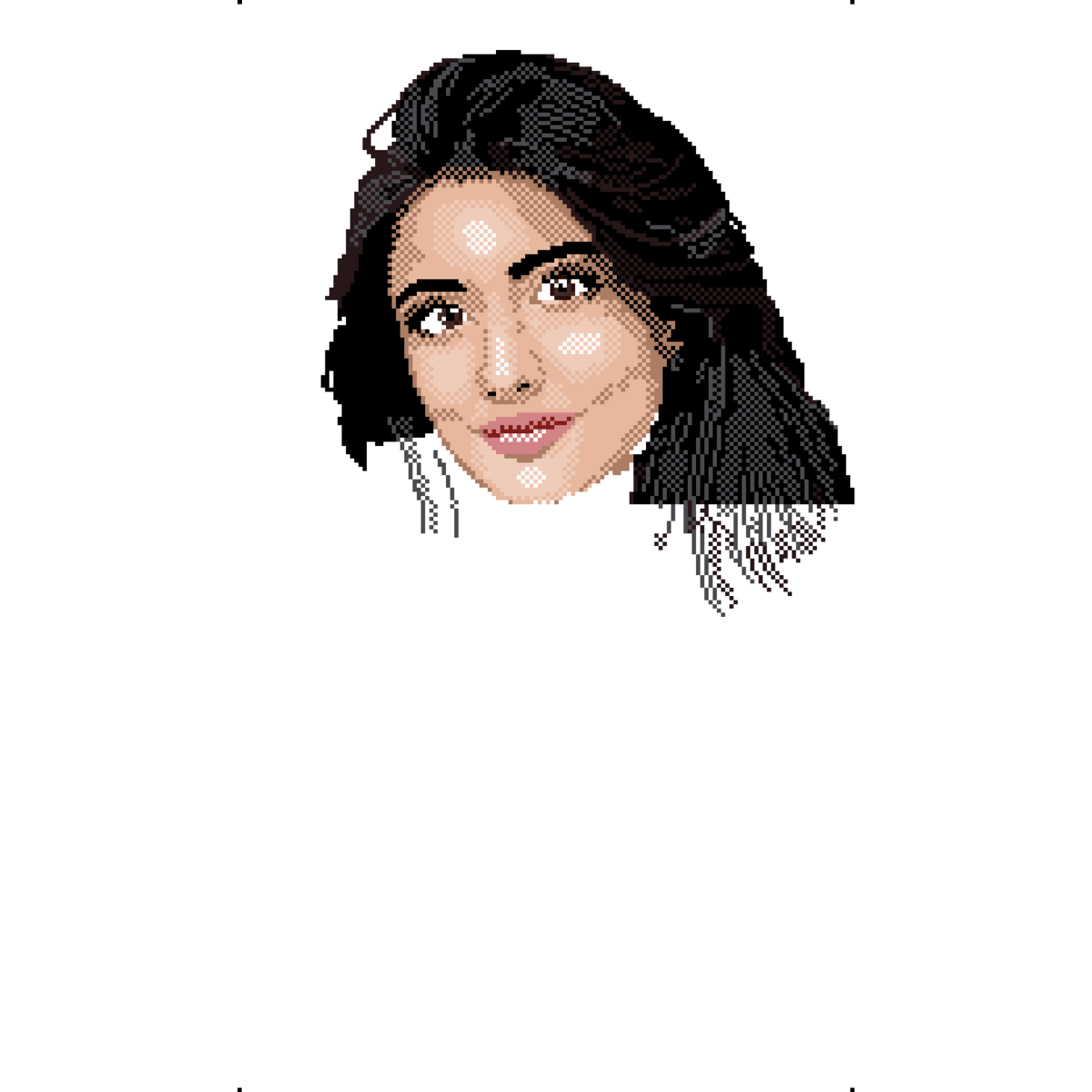 Po kilku latach postanowiłem wrócić do tworzenia grafik w tym stylu. W celu przećwiczenia i przypomnienia sobie zasad zrobiłem średnio udaną, pixel-artową wersję Kariny. Niedługo po publikacji Kariny, 9 marca 2020 zacząłem pracę nad portretem. Jako podkład tej pracy posłużyło mi to zdjęcie. Modelka mi się podobała i dlatego wybrałem to właśnie zdjęcie.