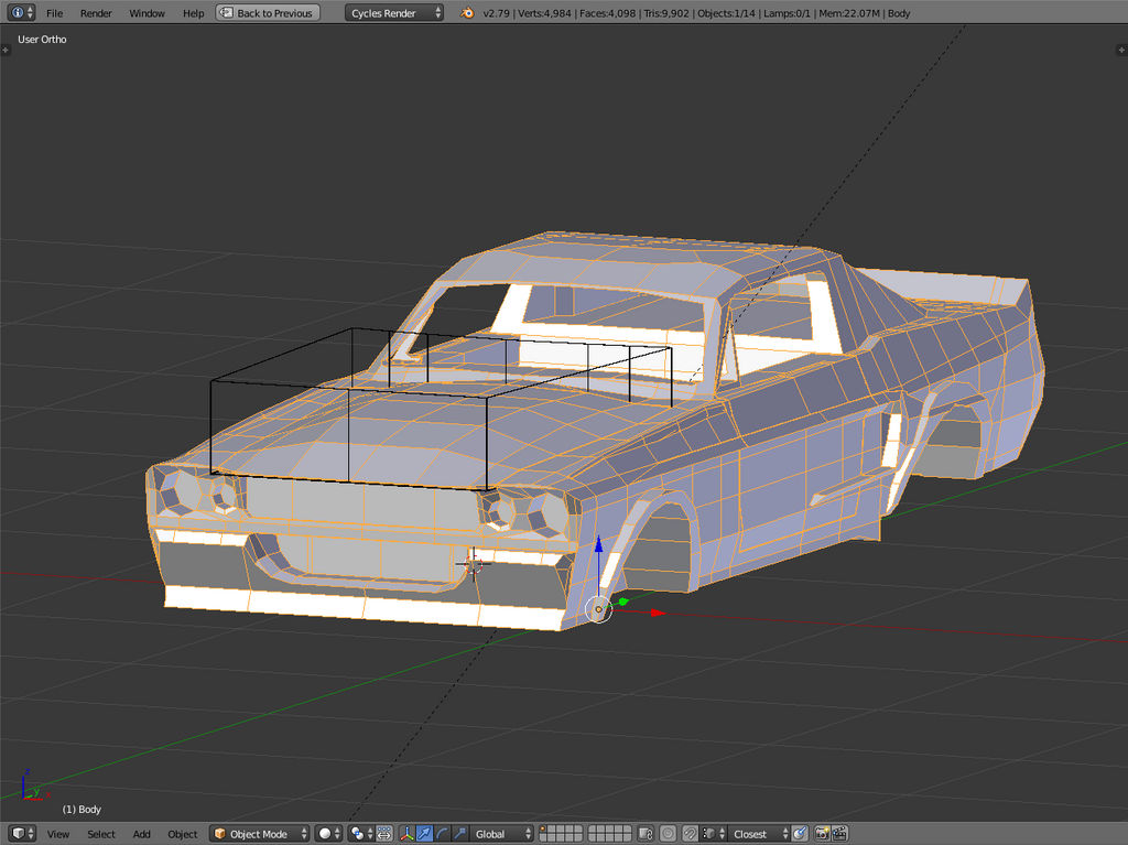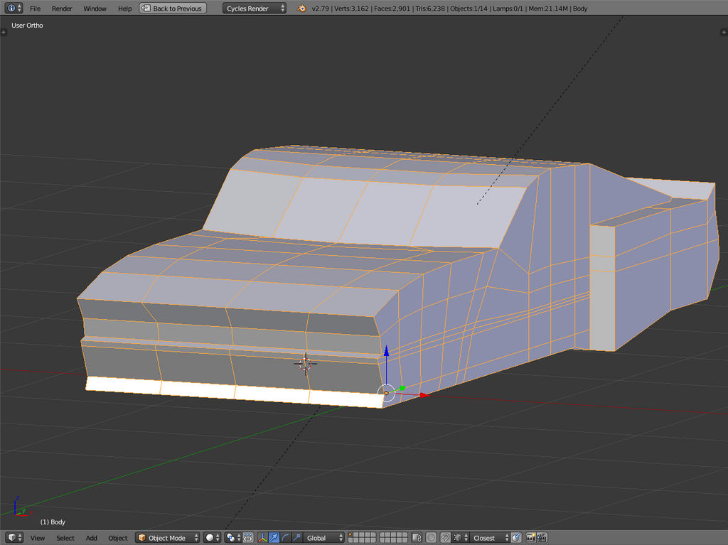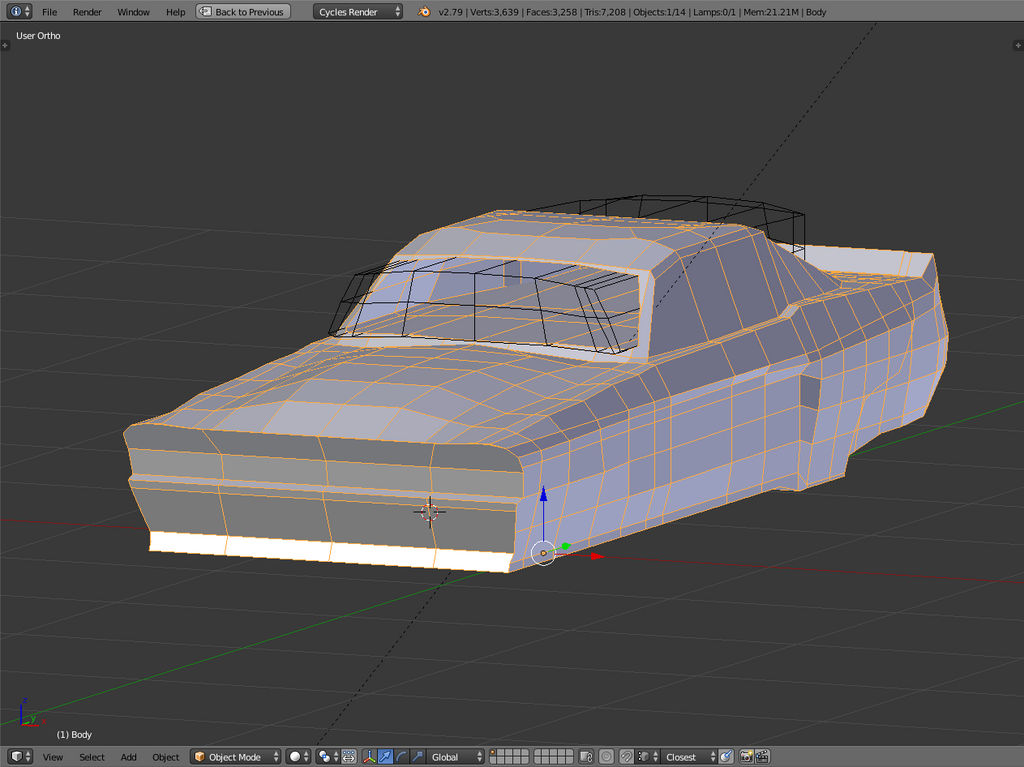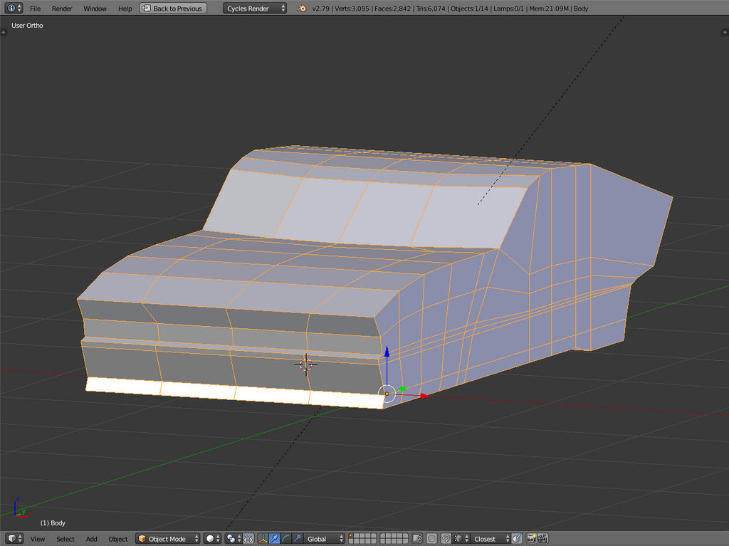 Jako, że jestem samoukiem, do wielu rzeczy musiałem dojść sam. Ten samochód bardzo dobrze ilustruje to w jaki sposób tworzyłem modele samochodów w 2019 roku. Myślałem wówczas, że wystarczy jakoś wymodelować generalny kształt auta, nie patrząc na jakąś tam topologię, a następnie wrzucić modyfikator Subdivision surface, żeby to się „wygładziło”. Oczywiście jest to bzdura, bo jeżeli topologia jest do bani, to efekt końcowy tego zabiegu też będzie do niczego, a przy okazji modyfikator dodaje od groma niepotrzebnej geometrii, obciążającej pracę sprzętu. Poprawnej topologi zacząłem się uczyć dopiero w 2020 roku, tworząc modele low-poly, gdzie poprawne rozłożenie siatki było kluczowe.