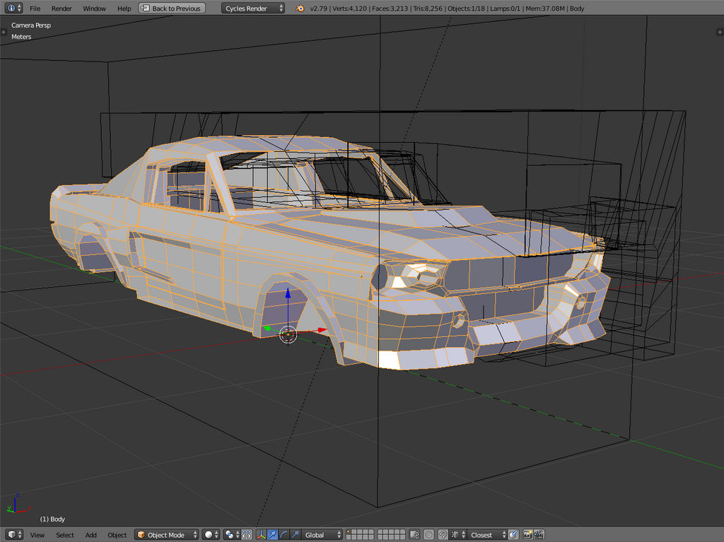 Teraz napiszę trochę o powstaniu tego modelu. Do stworzenia tego projektu namówił mnie mój najlepszy przyjaciel, wielokrotnie prosząc mnie o to. Bardzo mu się to auto podobało. Ja osobiście bardziej wolę oryginalnego Forda Mustanga z 1964 roku, więc zrobiłem ten model bez jakiegoś przekonania i ciśnienia. Jest to jeden z najstarszych modeli samochodów, które zrealizowałem (4 model samochodu licząc z Willysem MB). O samych technikach napiszę poniżej. Pracę trwały od 29 czerwca 2019 do 7 sierpnia 2019, gdy doszło do (pierwszej) publikacji. Z pierwszej publikacji nie zachowały się oryginalne rendery, te poniższe zostały wyciągnięte z dokumentu WIP tego auta.