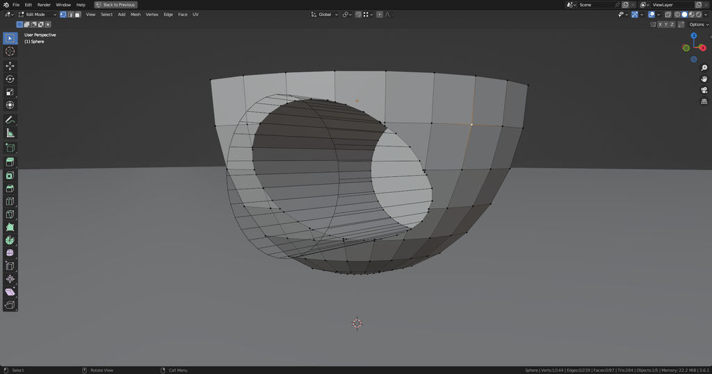 Tworzenie modelu tą techniką jest dość pracochłonne i wymaga stopniowego oczyszczania modelu w sumie po każdym kroku, ponieważ modyfikator Boolean bardzo mocno zaburza siatkę, a to wymaga poprawek. Najważniejsze przy tym było, żeby nie doszło do odwrócenia normalnych płaszczyzn lub nakładania wierzchołków między bryłą wejściową a wycinającą, bo wtedy działy się istne cuda – cały model mógł zniknąć, ponieważ komputer nie umiał odpowiednio obliczyć operacji. Poniżej pokazuję jaką masakrę modyfikator Boolean potrafi zrobić z topologią na prostym przykładzie wycinania walca w 1/8 kuli.
