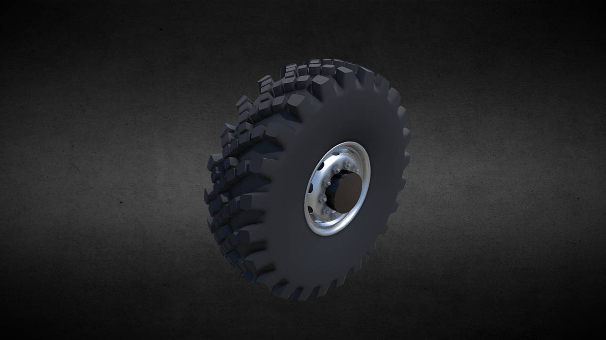 W trakcie tworzenia modelu ciężarówki postanowiłem, że opublikuję model koła tego wozu. Felgi mają rozmiar 21 cali. Opona jest kierunkowa (ta akurat jest ułożona jako lewa) i ma wymiary 425/85 R21 146J.