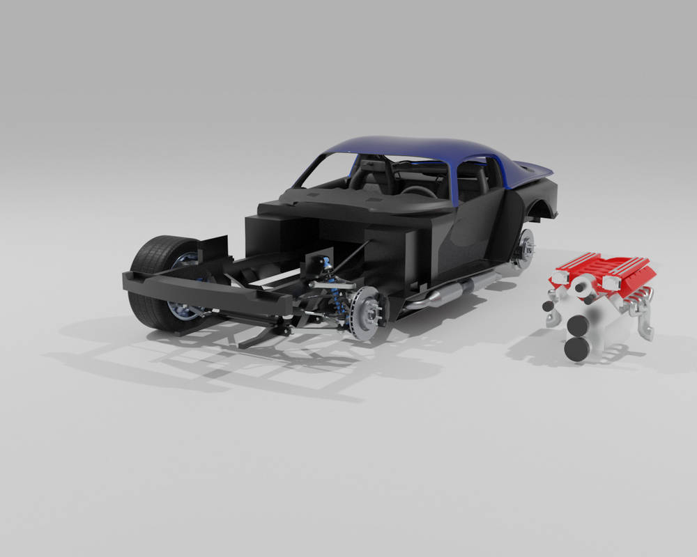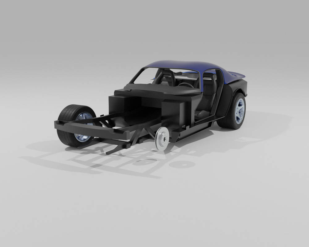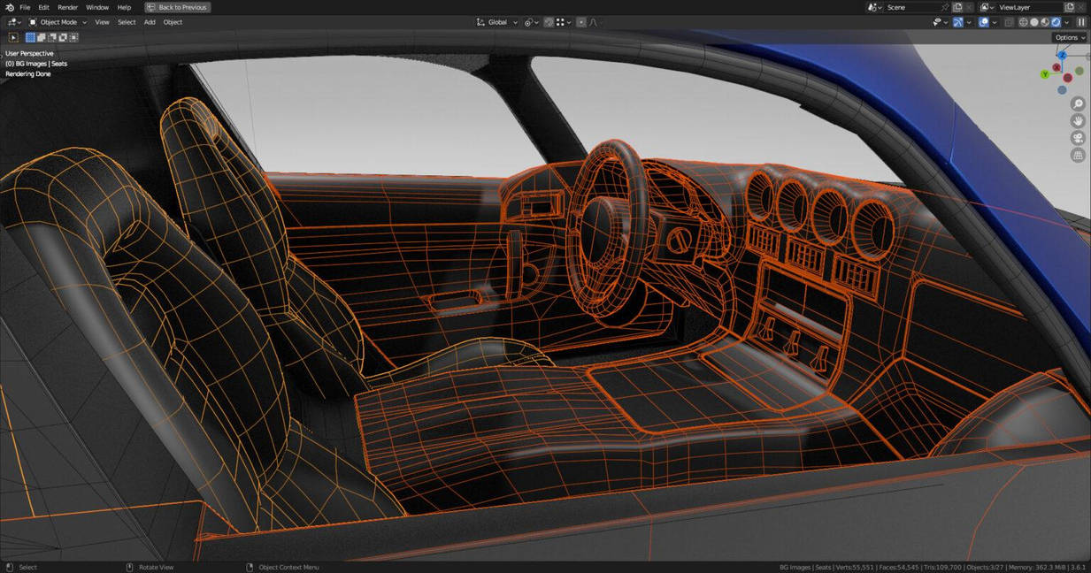 Według moich założeń projekt będzie wykonany w Blender 3D w jakości high-poly z uwzględnieniem uproszczonych (ale na miarę możliwości kompletnych) wnętrza, silnika i zawieszenia. Karoseria powstanie w oparciu o, jak ja to określam „prawidło”, na którym będzie naciągnięta karoseria przy pomocy modyfikatora shrinkwrap. Tekstury zostaną wykonane przy pomocy programu Substance 3D Painter. Niektóre tekstury powstaną przy pomocy Inkscape.