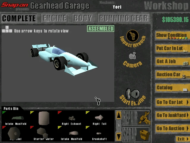 Moją pierwszą grą tego typu był Gearhead Garage – gra wydana w 1999, ale ja zetknąłem się z nią dopiero w gimnazjum – około 2004 roku. Niestety nie posiadam zrzutów ekranu, więc będę się posiłkował obrazkami z Internetu.