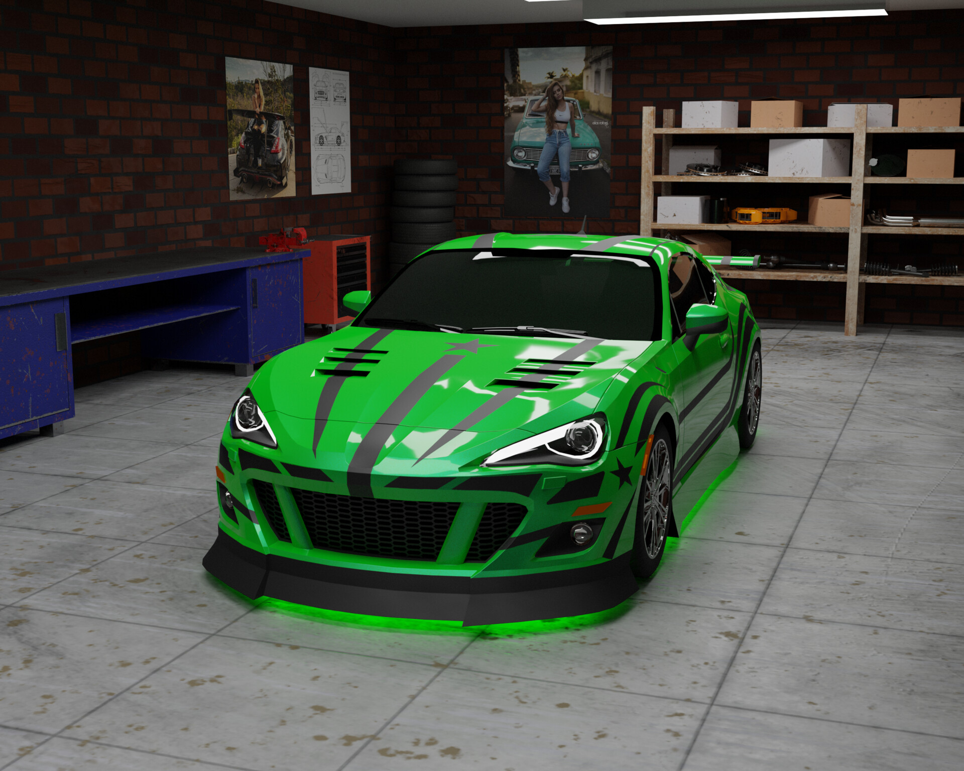 Minęło sporo czasu od niezbyt przyjemnej historii z zawieszeniem BMW E90. Po kilku wysłanych aplikacjach w końcu otrzymałem szansę na pracę. W styczniu 2021 roku otrzymałem zadanie rekrutacyjne. Polegało ono na stuningowaniu otrzymanego modelu samochodu sportowego na modłę wczesnych Need For Speed i „Szybkich i wściekłych”. Pamiętając, że wspomniane gry i filmy rozgrywały się na początku XXI wieku miałem przed oczami wizję takiego, jak to się mówi „ulepa”. Wtedy nie zakojarzyłem, że otrzymałem model Toyoty GT86 z 2012 roku, która swoją drogą nie pasuje do ram czasowych filmów. Wiedziałem, że to jakiś Japończyk i dlatego stuningowałem go w taki, a nie inny sposób. W tym czasie mój komputer stacjonarny padł i musiałem robić to zadanie na laptopie pożyczonym od siostry. W tamtym czasie nie posługiwałem się jeszcze specjalnymi, zaawansowanymi programami do teksturowania (Quixel Mixer lub Substance 3D Painter)